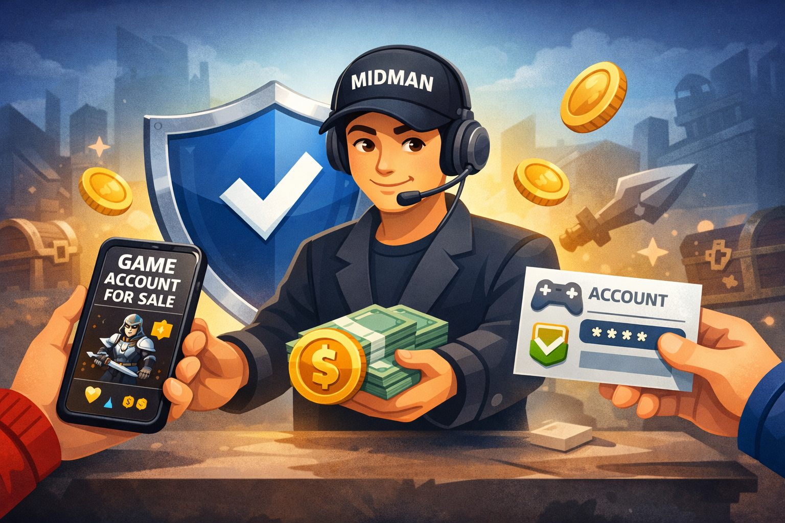 Midman adalah pihak ketiga yang membantu mengamankan transaksi antara penjual dan pembeli. Midman akan menahan pembayaran sementara hingga transaksi selesai.